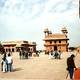 Construite sur un plateau rocheux( de 3,5km de long sur 1,5km de large, entourée d'un mur d'enceinte de 6km percée de 9 portes) par l'empereur Akbar, à partir de 1572, la capitale fut abandonnée une quinzaine d'années plus tard, suite à la baisse de la nappe phréatique.