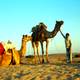 Découverte de Khuri, village traditionnel de potiers et de tisserands, aux petites maisons d'argile et de paille décorées, situé aux portes du désert. Promenade à dos de chameau dans les dunes au coucher du soleil, avec musique locale.